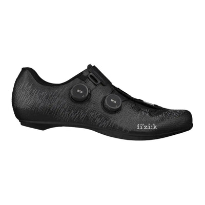- The updated Infinito also features an entirely new outsole with an engineered carbon fiber layup that saves weight and delivers increased stiffness. With a stiffness index rating of 10, this outsole is the stiffest in the fizik range. A wide vent inlet and deep internal channeling provide a cooling airflow, aiding in temperature regulation. The cleat positioning is set slightly further back compared to traditional settings to optimize pedaling efficiency and reduce knee compression, especially well-suited to very aggressive, forward aero positions.