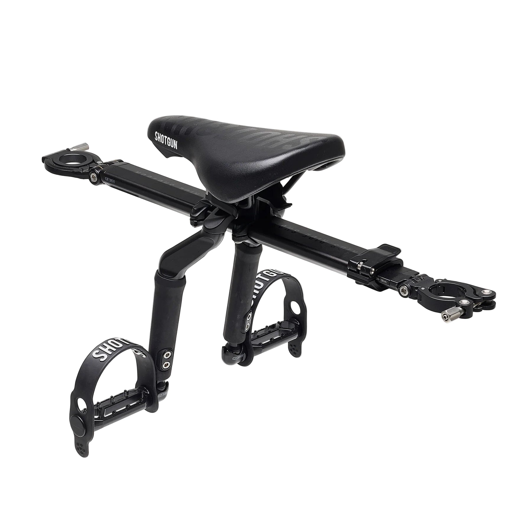 The Shotgun Pro combo is the ultimate setup for your mountain bike kid. Lightning fast to attach and remove, zero frame contact and adjustable to fit electric & regular mountain bikes. With the Pro handlebars included, your little one is going to love hitting the trails riding up front.