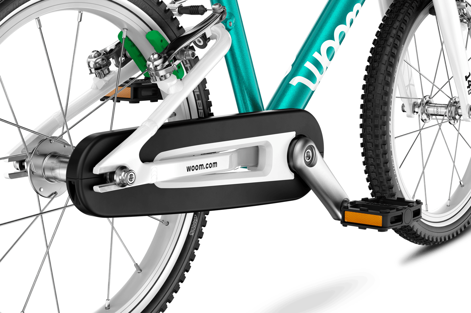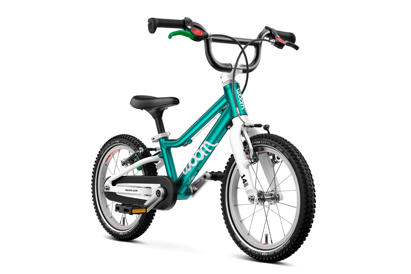 • Minimum weight. Maximum fun: Lighter bikes are so much easier to handle – and that means your child can focus on having fun. That's why our woom GO bikes only weigh around a quarter of your child's weight. You'll know you made the smart choice when you inevitably end up carrying your child and their bike (you can thank us later).Green rear brake