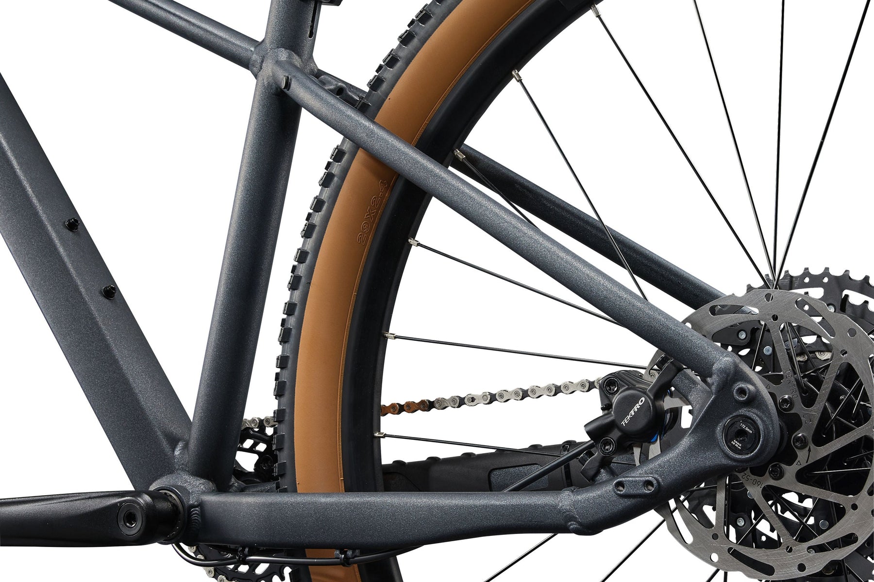 - Off-Road Control: The new geometry is optimized for confident trail riding, with two wheel size options (27.5- or 29-inch) based on frame size. It’s also designed to match front suspension travel with either an 80mm or 100mm fork. All models have clearance for high-volume tires (up to 2.4 inches) for traction and grip on technical terrain.