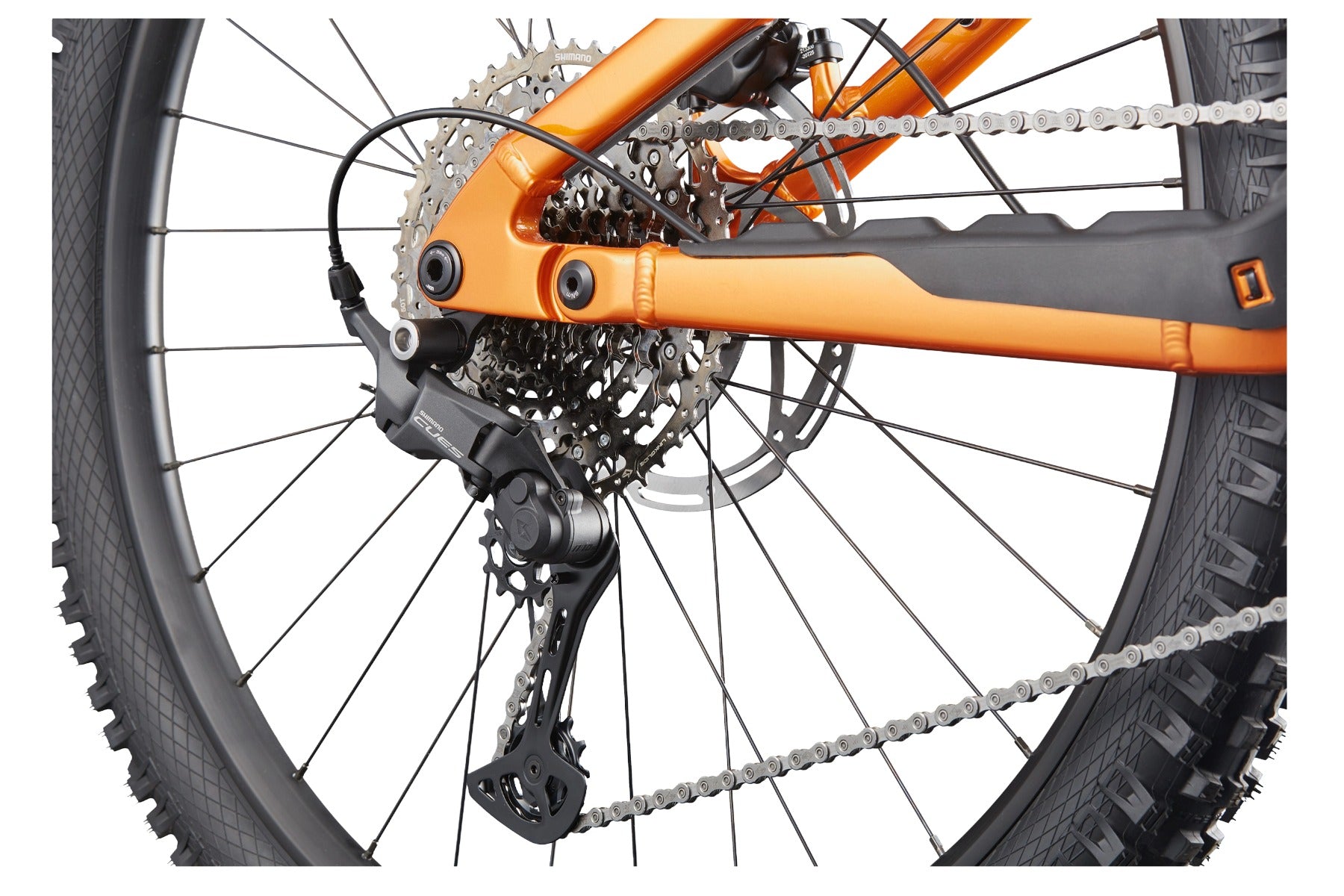 Moterra, SmartForm C1 Alloy, 29" wheels, 150mm travel, Cannondale Tuned Suspension, removable downtube battery, alloy skid plate, 55mm chainline, internal cable routing, 148x12mm thru-axle, UDH, 200mm native post mount brake, 1.5” – 1.8” tapered headtube, 40mm two-bolt kickstand compatible, integrated Moterra rear rack mounts